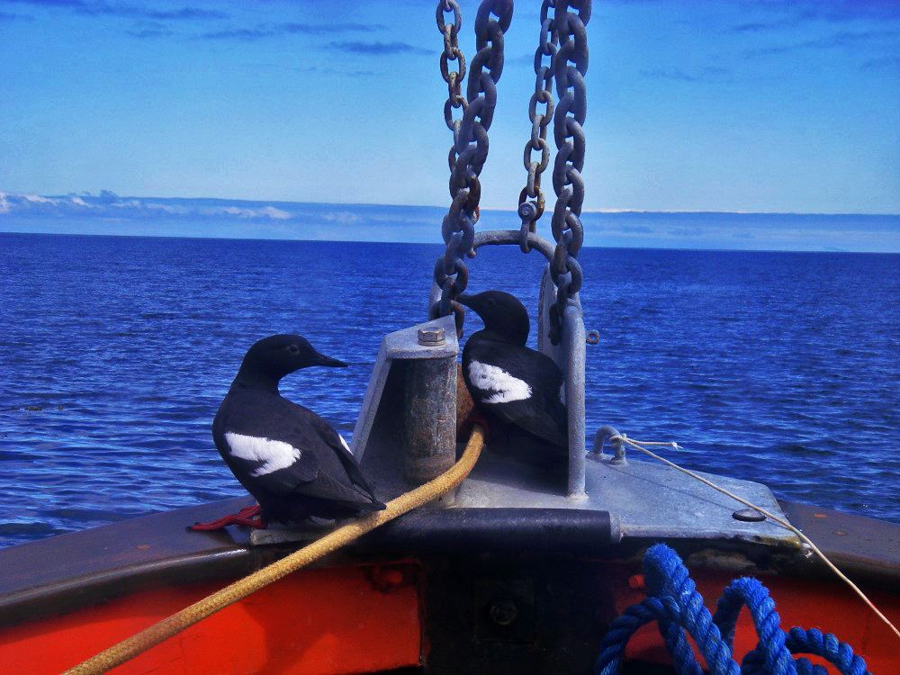 You don’t have to be Bing Crosby and Grace Kelly to be in love. Just look at these pigeon guillemots, resting on the bow of the MV Eden Lake off the west coast of the Queen Charlotte Islands. They are also in love, just resting for a while, and whispering “sweet nothin’s” to each other.