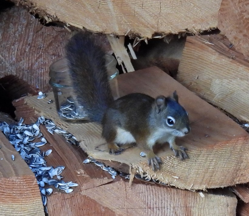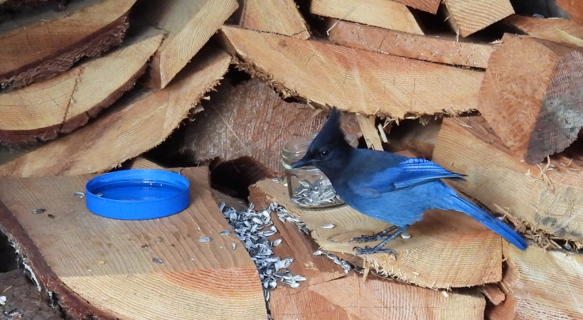 Darn it all. There’s that nasty Estelle the Steller’s jay. She’s got quite a beak on her. I’ll just watch her out of the corner of my eye.