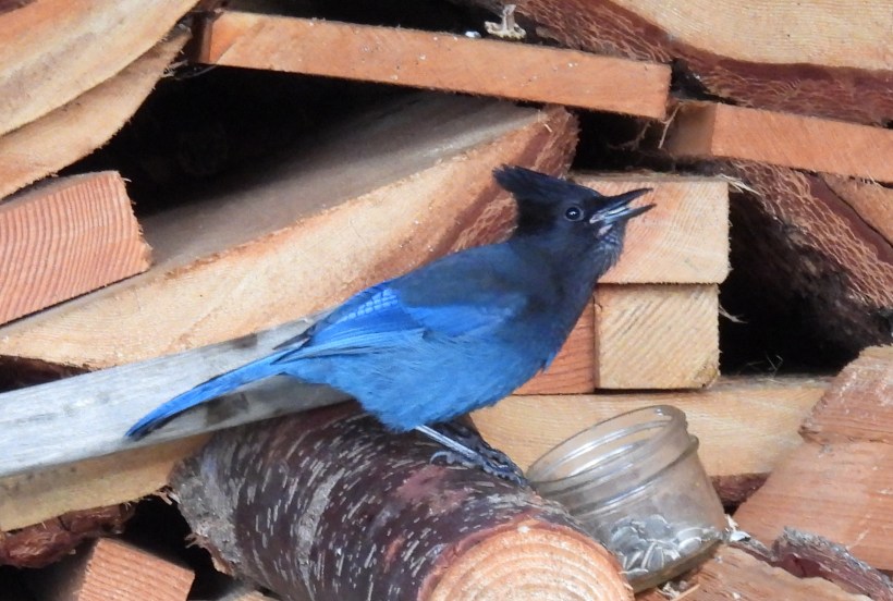 I just hope that Steller’s jay isn’t hanging around. He has a sharp beak, like a spear. Maybe when I grow up I’ll take him on, but for now, it’s better to play it safe.