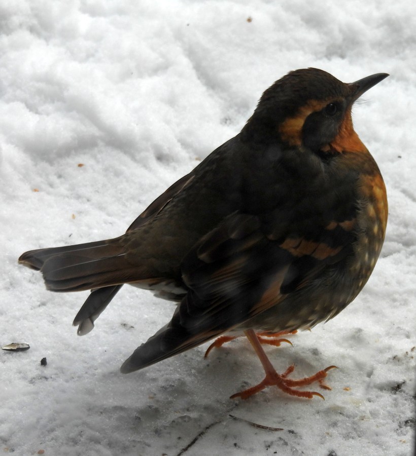 “Wow!” she says. “A varied thrush!” And she tells herself to stop drooling.