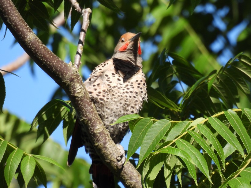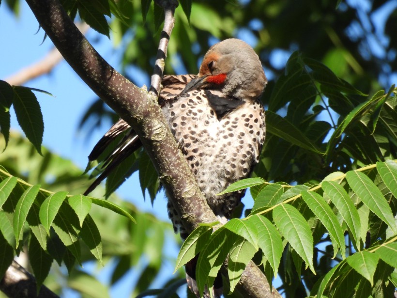 Northern flicker. There are two kinds – the red-shafted flicker and the yellow-shafted flicker. This is the red-shafted one, but I think they both go under the name of northern flicker.
