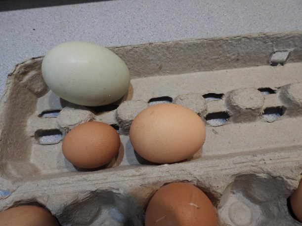 It turned out that big daddy turned out to be twice the man anyone thought he was. Here he is in the bowl. He had an eggstra yolk to tell, but we never got to hear it.