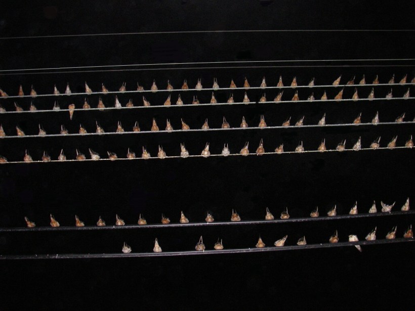 But look at these guys! They’re all facing the same way, except one or two. There is always one who travels to a different drum (second wire down). I see another one on the bottom wire. Just above him is a little guy who was trying to tell him to turn around, and nearly lost his balance himself.
