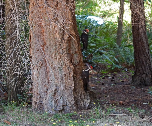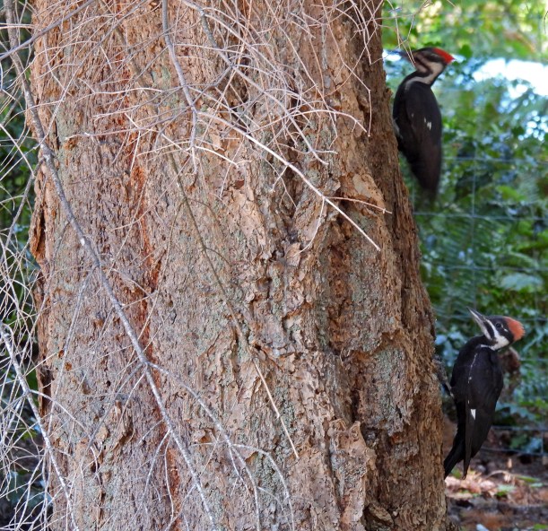 Pam is near the bottom of the tree here, and Junior is above her. Junior’s topknot is not a brilliant red yet, most likely for her own protection. She won’t be such a target for her enemies.