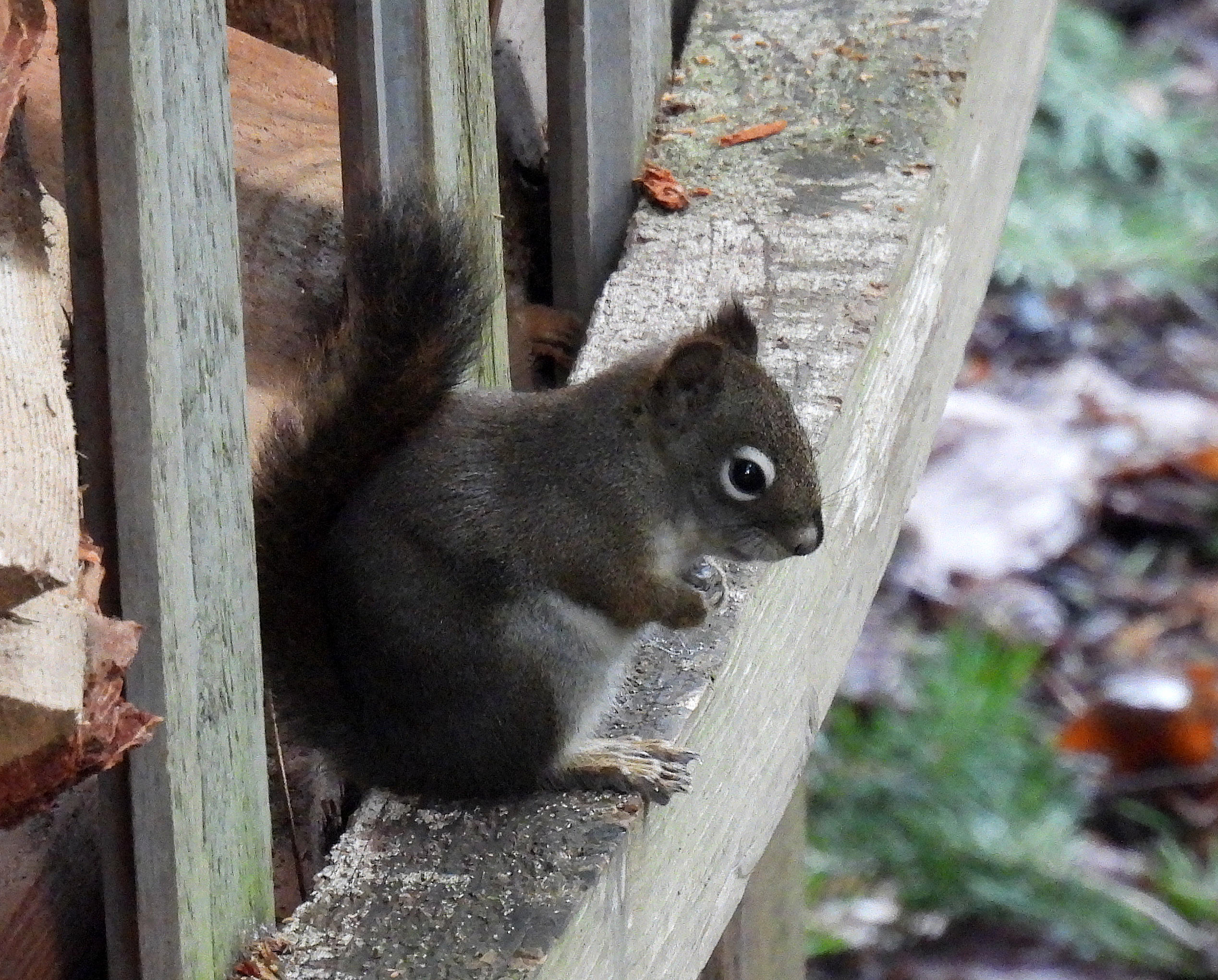 We don’t have hazelnuts here in Texas (at least that I know of), but we have pecans and the ‘balls’ on our cedar trees. While Crispin’s chewing on hazelnuts, I’ve noticed the debris from cedar balls beginning to cover the ground; his Texas pals are munching, too.