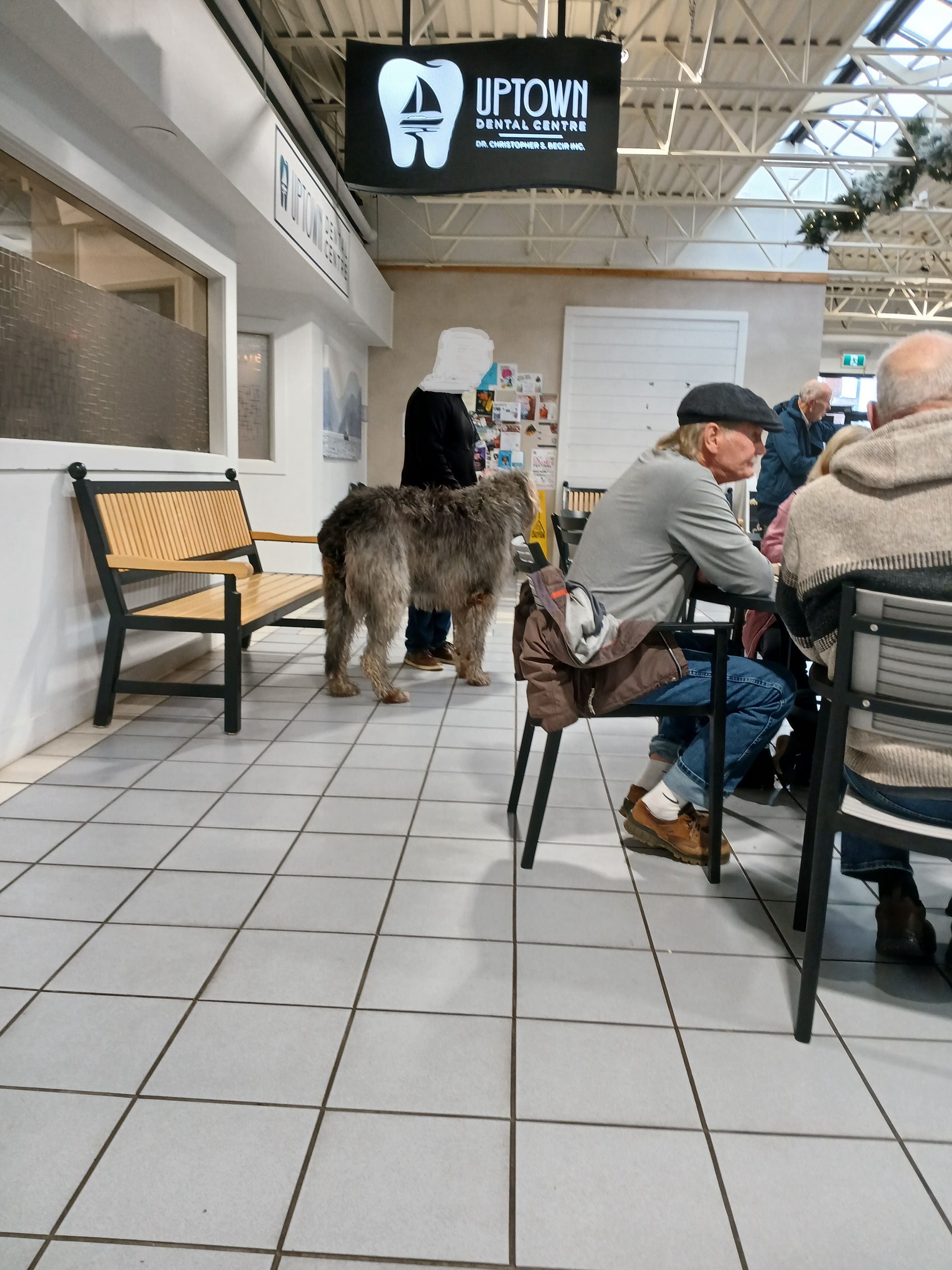 This gentle dog was visiting at the mall last week. I’ve whited out his owner’s face for the sake of his anonymity.