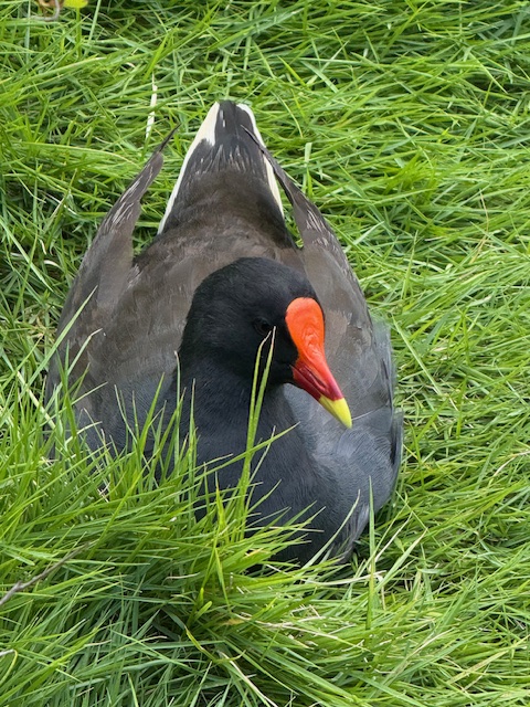 I think this is either a Eurasian moorhen or a dusky moorhen, probably the latter. The photo was taken by friends on the east coast of Australia.