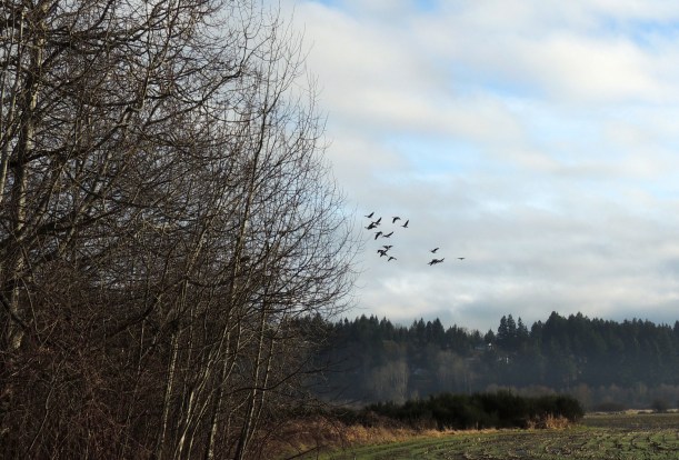 The geese are moving in from places farther north where they have enjoyed warmer weather until now. They sense that the season is cooling off and have come to visit the fields of southern BC to fatten up on leftover grain, bits of corn, and anything else that looks good. Once they have met up with their friends in ever greater numbers, and they have rested and feasted and done little test flights during this staging time, many of them will fly farther south where the winter is not as harsh. A few smaller flocks will settle in to spend the winter here on Vancouver Island, in the hope that the coldest weather will be bearable and not last too long.