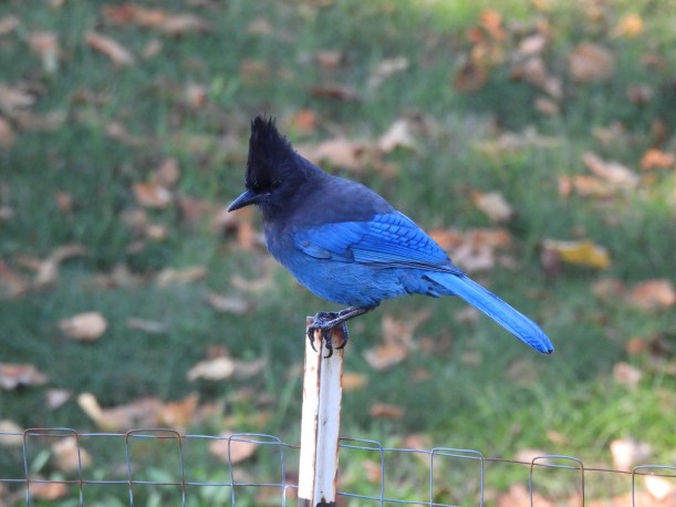 Darn it all. There’s that nasty Estelle the Steller’s jay. She’s got quite a beak on her. I’ll just watch her out of the corner of my eye.