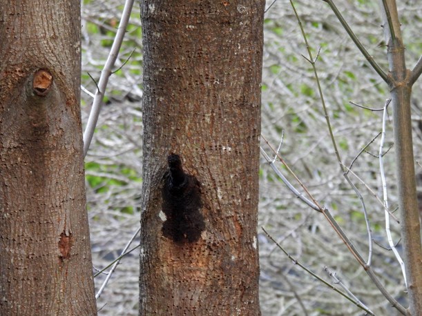 But then I thought, “That’s strange. He should have flown by now. Or at least pecked at the bark. But he’s just sitting there. Maybe he’s sick.”