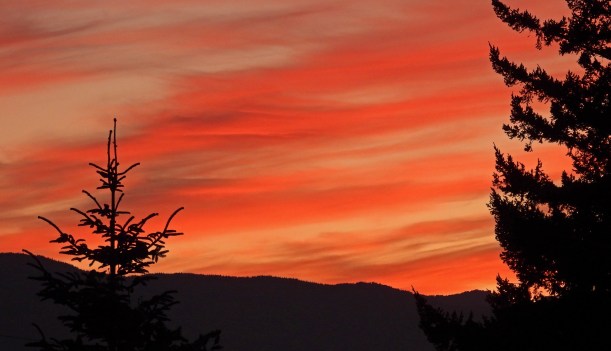 At a certain time of the evening, the last rays of the sun paint a golden glow on the tall firs. We call it “the nice light” when that happens. The morning light is similar, but the glow isn’t as warm as the evening light.