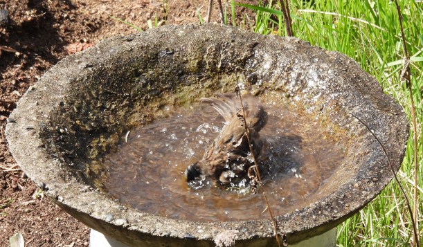 The sun came out today. It was a big deal. The golden-crowned sparrows decided that it was time for their spring bath.