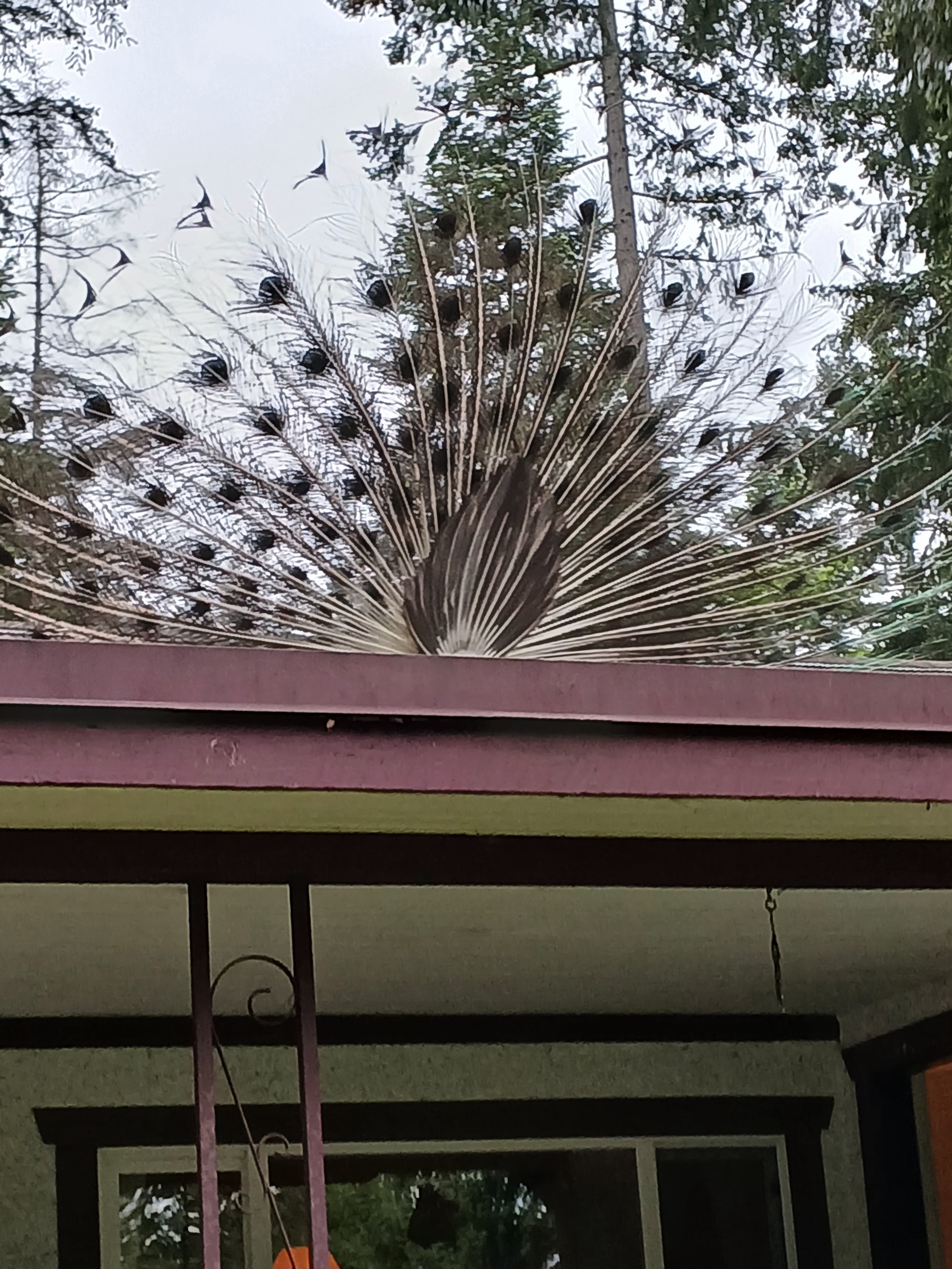 My friend who has the house where the peacocks visit, sent me some more photos that he snapped with his phone, so I thought I’d share them with you.