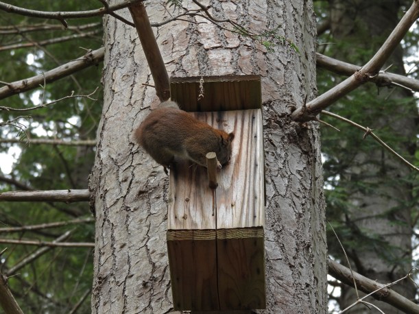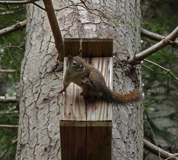 Nobody home. But if Della and I are going to have fun in this playhouse, I’ll have to do some renovations to the door first.